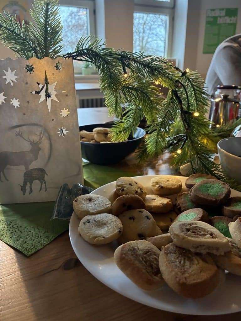 Die Nähgruppe hat am 08.12. eine kleine Weihnachtsfeier organisiert, zu der auch weitere engagierte Menschen aus dem Stadtteilzentrum eingeladen waren. Es war ein nettes Beisammensein bei Plätzchen, Musik und schönen Geschichten.